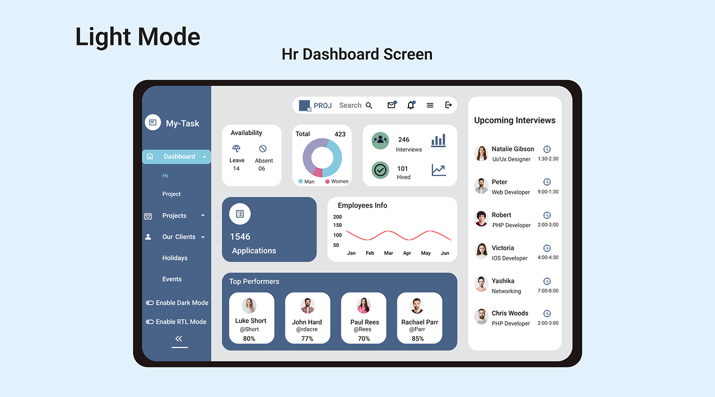Users can manage their projects easily cause of the features present in the dashboard which helps the users to analyze and get a better understanding of the progress of the projects. Users can also keep track of the clients in a hassle free manner